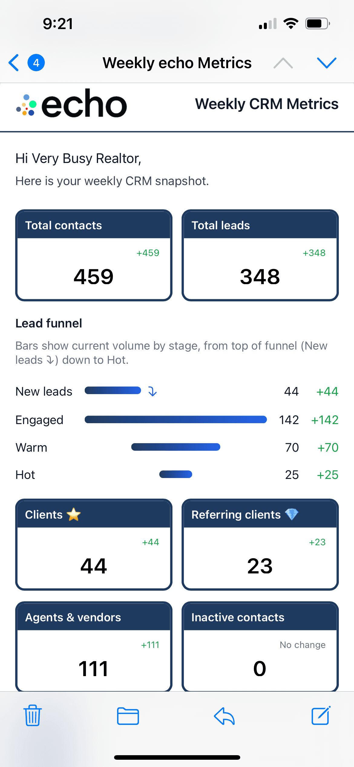 echo is a no-setup CRM for real estate professionals who value relationships over software. It works entirely through email.